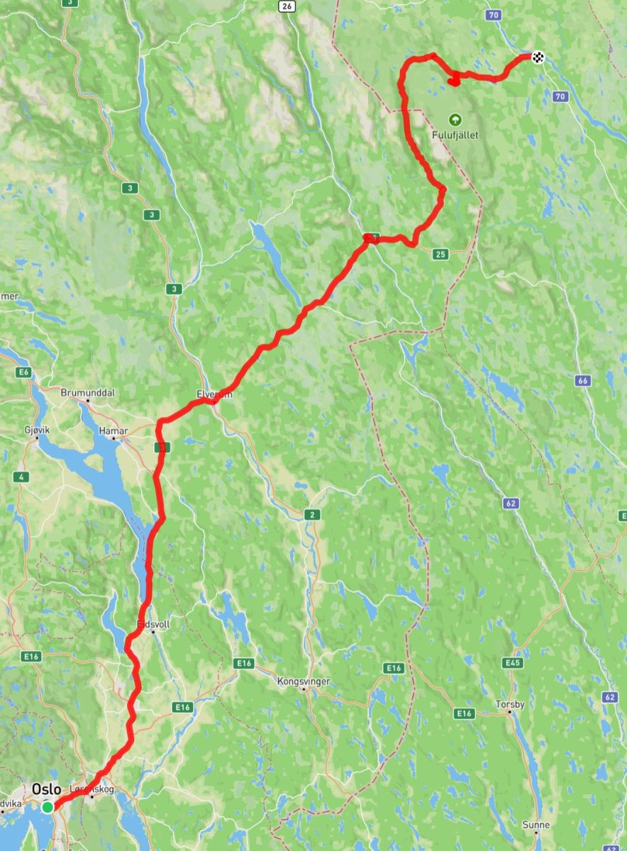nordwärts - auf der E6. Später geht es über die RV 3 nach Elverum und weiter über Nybergsund. Unterwegs gibt es ein Picknick