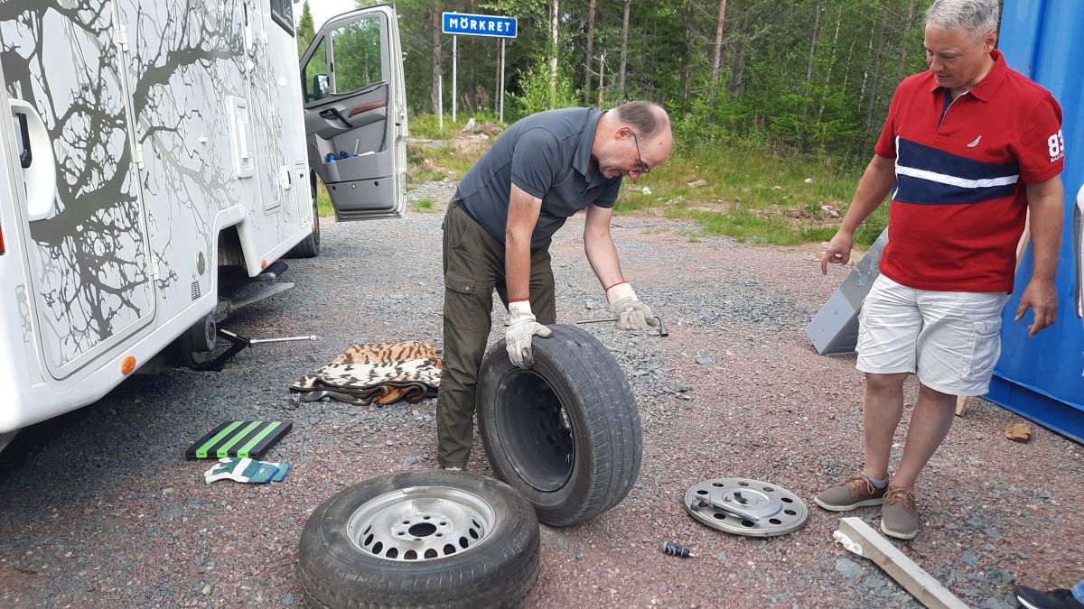 telefonisch klären, dass wir in ein paar Tagen in Luleå ein neues Ersatzrad bekommen können. Zum Mittag halten
