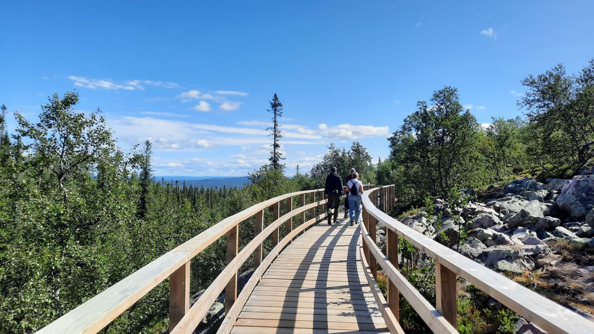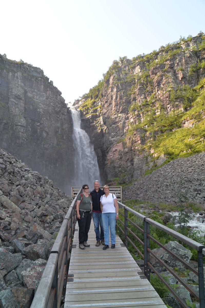 Nach einem Frühstück im Freien bei schönem Sonnenschein fahren wir ein Stück zurück, um die Wanderung am Njupeskäret