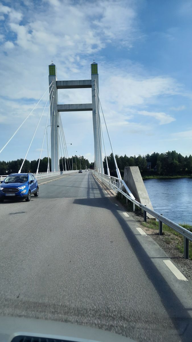 zum Muoneälv nach Kolari. Dabei überqueren wir (wieder unspektakulär) die Grenze nach Finnland. Ab da folgen wir der E8 in